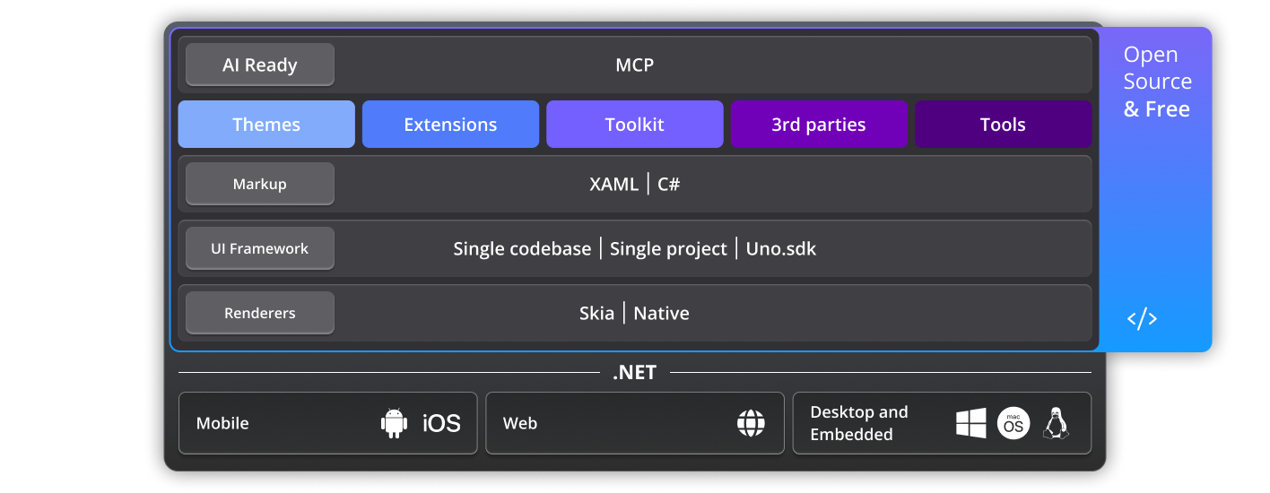 “At Uno Platform, we guarantee that everything core to building and running your cross-platform app will always be free and open source under the permissive Apache 2.0 license, with no hidden restrictions. Our sustainability relies on optional premium tools and enterprise support, ensuring your projects remain future-proof, open, and unconstrained—today and long into the future.”